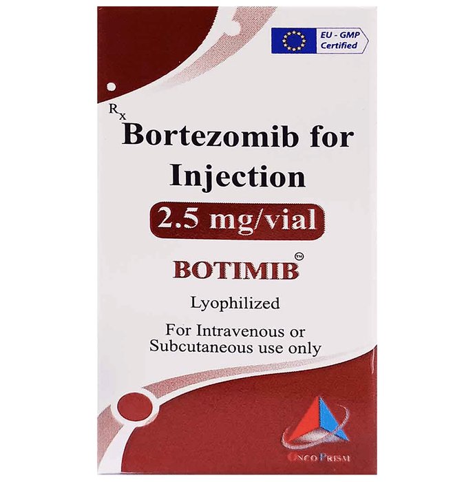 description:Botimib Injection is used in the treatment of multiple myeloma and mantle-cell lymphoma. It shows its working by stopping or slowing down the growth of cancer cells. Botimib Injection is given as an injection by a qualified medical professional. Your doctor will decide what dose is necessary and how often you need to take it. This will depend on what you are being treated for and may change from time to time. You should take it exactly as your doctor has advised. Taking it in the wrong way or taking too much can cause very serious side effects. It may take several weeks or months for you to see or feel the benefits but do not stop taking it unless your doctor tells you to.Fatigue, nausea, vomiting, and loss of appetite are some common side effects of this medicine. You may be advised to drink plenty of fluids every day during the treatment. You should not drive or operate machinery as medicine may cause tiredness and dizziness. This medicine may reduce the number of blood cells (decrease red blood and white blood cells) in your blood, thereby, increasing the susceptibility to infections. Regular blood tests are required to check your blood cells along with heart, liver, and blood uric acid levels.Before taking Botimib Injection, consult with your doctor if you have any liver, kidney, heart disease or bleeding problem.  It is important to consult a doctor if you develop symptoms like memory loss or trouble in thinking. Many other medicines can affect, or be affected by, this medicine so let your healthcare team know all medications you are using. This medicine is not recommended during pregnancy or while breastfeeding. The use of effective contraception by both males and females during treatment is important to avoid pregnancy.