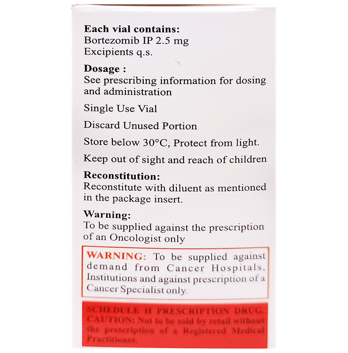 Marketer:Jodas Expoim,Composition:Bortezomib (2.5mg), medicine_typedrugs,Packaging Detail:vial of 1 Injection,                   Package:Vial,Qty:1,Product Form:Injection, prescription_required:Prescription Required,primary_use:
