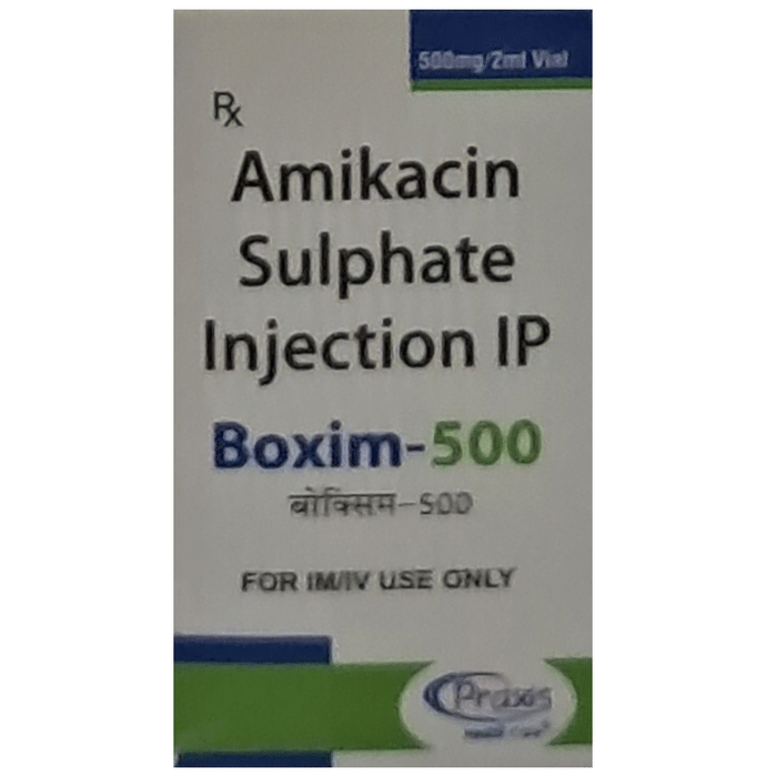 Marketer:Praxis Health Care,Composition:Amikacin (500mg), medicine_typedrugs,Packaging Detail:vial of 2 ml Injection,          Package:Vial,Qty:2 ml,Product Form:Injection, prescription_required:Prescription Required,primary_use: