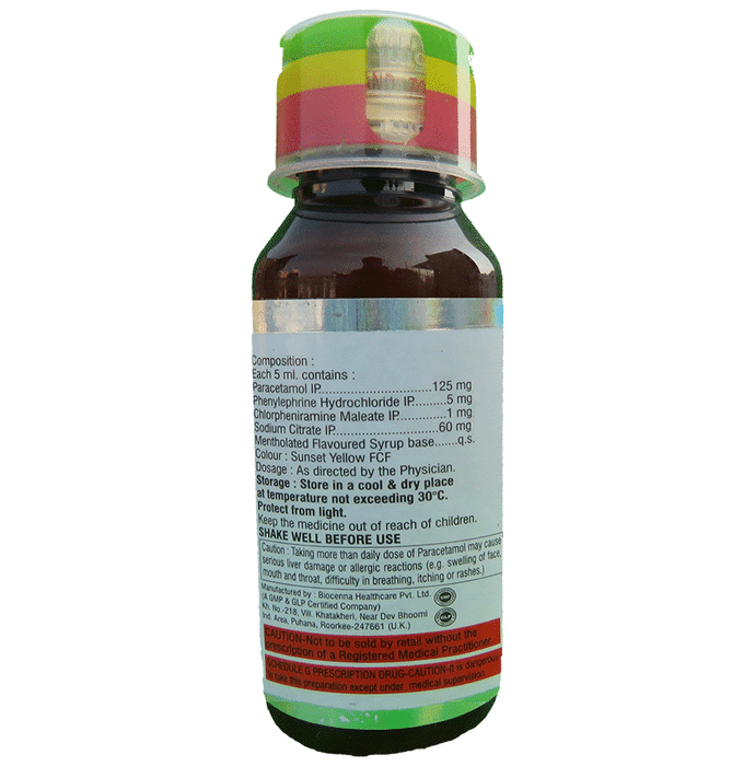 Marketer:Ellinor Lifesciences,Composition:Chlorpheniramine Maleate (1mg/5ml) + Phenylephrine (5mg/5ml) + Paracetamol (125mg/5ml) + Sodium Citrate (60mg/5ml), medicine_typedrugs,Packaging Detail:bottle of 60 ml Oral Suspension,          Package:Bottle,Qty:60 ml,Product Form:Oral Suspension, prescription_required:Prescription Required,primary_use: