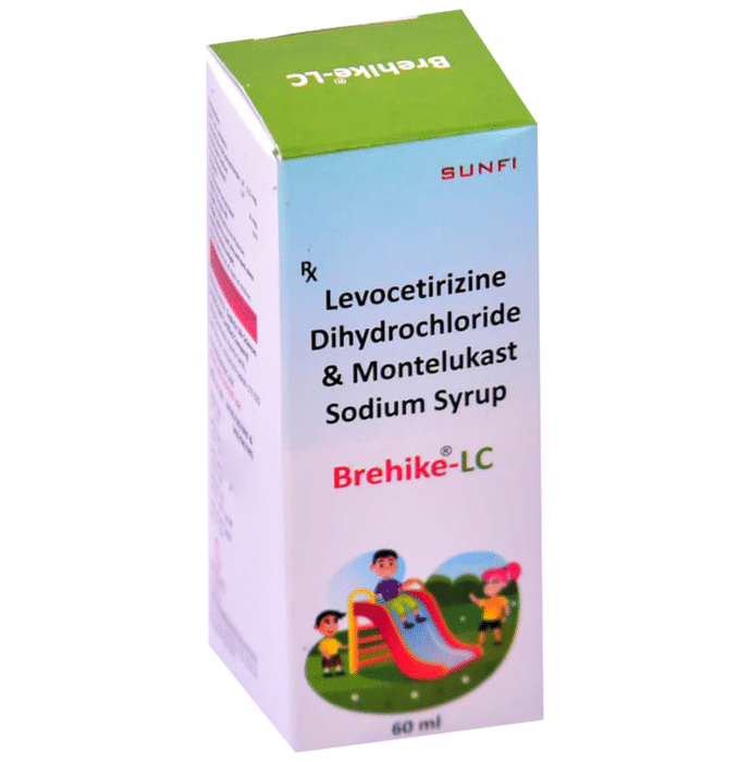 description:Brehike-LC Syrup is commonly prescribed in children to treat symptoms of allergy such as runny nose, sneezing, itching, swelling, congestion, and watery eyes. It may also help in the treatment of asthma and skin allergies. Give this medicine to your child at a fixed time before or after food in the prescribed dose, time, and way. For asthma, prefer giving Brehike-LC Syrup in the evening or 2 hours before physical activity. For allergy, it is best to give it either in the morning or in the evening, depending upon the time of onset of symptoms. In case your child has both, prefer giving it in the evening. If your child vomits within 30 minutes of taking this medicine, give the same dose again, but skip it if it’s already time for the next dose.Your child may start to feel better after a few regular doses. However, you must still complete the prescribed dose to ensure maximum benefit. Moreover, stopping the medicine abruptly may worsen your child’s condition. This medicine may cause some minor and temporary side effects like vomiting, diarrhea, nausea, dizziness, dry mouth, rash, and headache. Usually, these episodes subside once your child’s body adapts to the medicine. However, in case these effects persist or start bothering your child, consult your child’s doctor without any delay.Let your child’s doctor know if your child is already taking any medicines. Also, narrate your child’s complete medical history, including any prior episodes of allergy, heart problem, blood disorder, vascular disorders, birth defects, airway obstruction, lung anomaly, skin disorder, liver impairment, and kidney malfunction. This information is critical for dose alterations and in planning your child’s overall treatment.