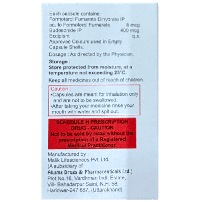 Marketer:Archegos Ventures Private Limited,Composition:Formoterol (6mcg) + Budesonide (400mcg), medicine_typedrugs,Packaging Detail:bottle of 30 Powder for Inhalation,          Package:Bottle,Qty:30,Product Form:Powder for Inhalation, prescription_required:Prescription Required,primary_use: