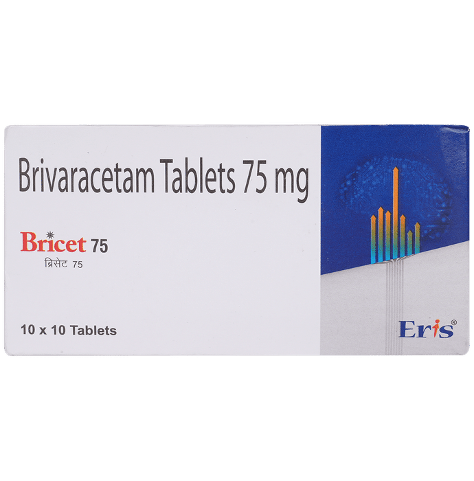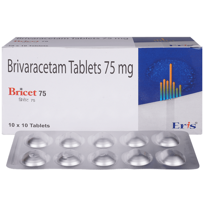 description:Bricet 75mg Tablet is an anti-epileptic medicine used to treat seizures (fits) in epilepsy. It can be used alone or along with other medicines. It helps to prevent seizures for as long as you continue to take it. Bricet 75mg Tablet suppresses the abnormal electrical activity in the brain. You can take it regularly with or without food but try to take it at the same time each day to get the most benefit. The dose and how often you need it will be decided by your doctor so that you get the right amount to control your seizures. It may be increased gradually.It is generally advised as a long-term treatment. You should continue taking it for as long as your doctor has told you to, even if you feel well. If you stop or miss doses your seizures could get worse. Do not stop taking this medicine unless your doctor tells you to. This is because stopping the medicine suddenly could make your seizures worse.Some common side effects of this medicine include dizziness, headache, nausea, and vomiting. You may also experience behavioral changes, aggressive behavior, irritation, agitation, etc. Side effects are more common during the first few weeks and usually lessen as your body gets used to the medicine. Most of these side effects do not need medical attention, but some of them can be serious. A small number of people being treated with this medicine have had thoughts of harming or killing themselves. Contact your doctor if your mood changes for the worse.Before taking it, you should tell your doctor if you have liver or kidney-related problems, depression, or suicidal thoughts, and if you are pregnant or planning to become pregnant. Breastfeeding mothers should also consult their doctor before taking this medicine.