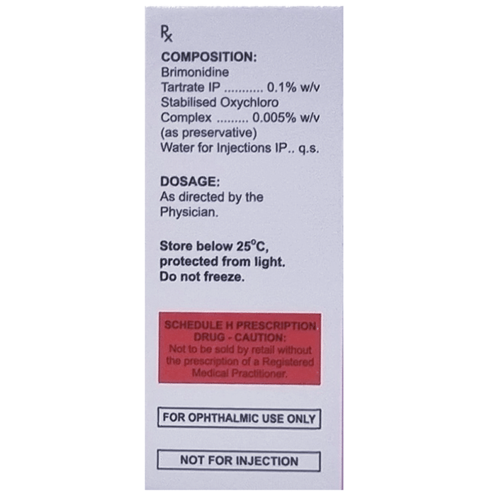 description:Brimopress-LS Eye Drops is a medicine used in the treatment of glaucoma. It decreases the fluid (aqueous humor) production in the eye which relieves the pressure in the eye. This way it relieves the symptom and speeds up the healing. Brimopress-LS Eye Drops is to be used only in the affected eye in the dose and duration as advised by the doctor. Wash your hands before using this medicine. It is advised to check the label for directions before use. Do not skip any doses and finish the full course of treatment even if you feel better.The most common side effects include itching, stinging, redness, and burning sensation at the site of application, and foreign body sensation.In case of accidental contact with your ears, nose, or mouth, immediately rinse it with water.Inform your doctor if you have a known allergy to any of the ingredients in this medicine or if you are taking any other medication. It is advised not to drive or operate heavy machinery immediately after using this medicine as it may cause temporary blurring of vision and may affect your ability to drive.