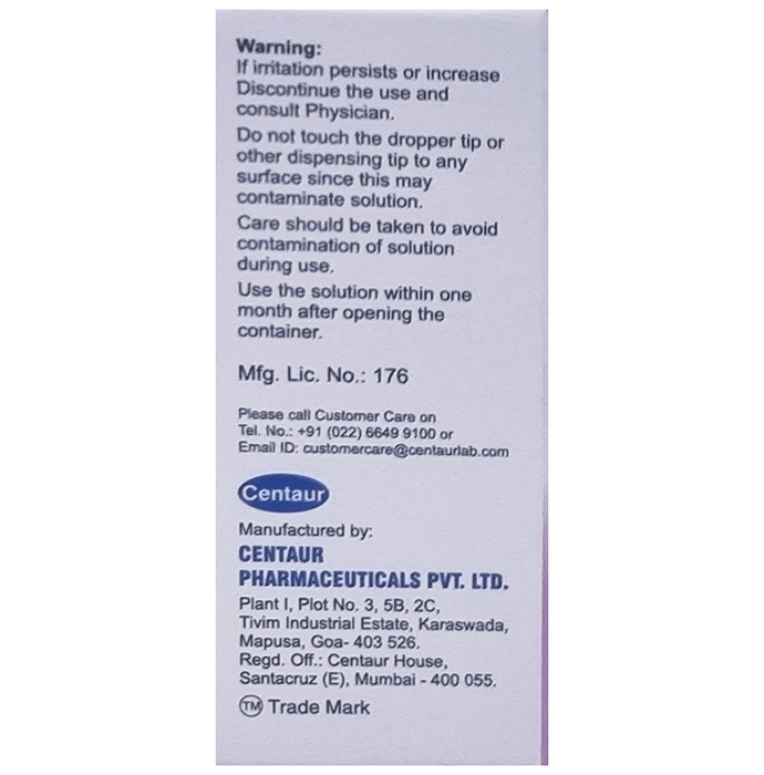 Manufacturer details:,                                   Marketer details:Centaur Pharmaceuticals Pvt Ltd | CENTAUR HOUSE, Near Grand Hyatt, Vakola ,Santacruz – East, Mumbai – 400 055, India.
