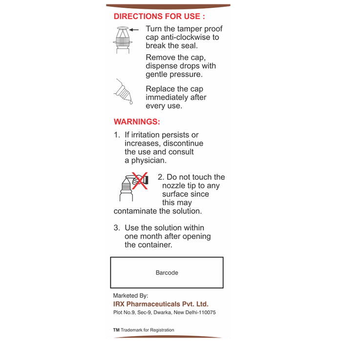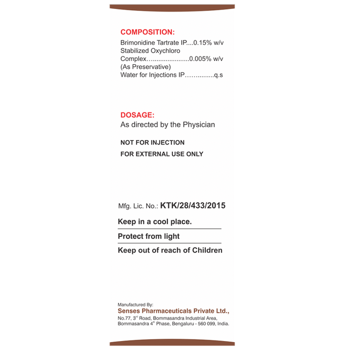 Marketer:IRx pharmaceuticals Pvt Ltd.,Composition:Brimonidine (0.15% w/v), medicine_typedrugs,Packaging Detail:bottle of 5 ml Eye Drop,                   Package:Bottle,Qty:5 ml,Product Form:Eye Drop, prescription_required:Prescription Required,primary_use: