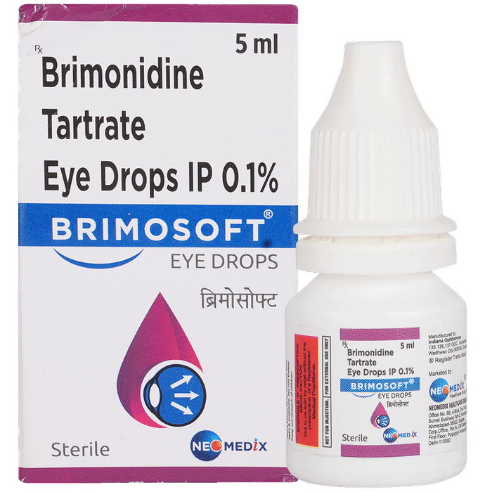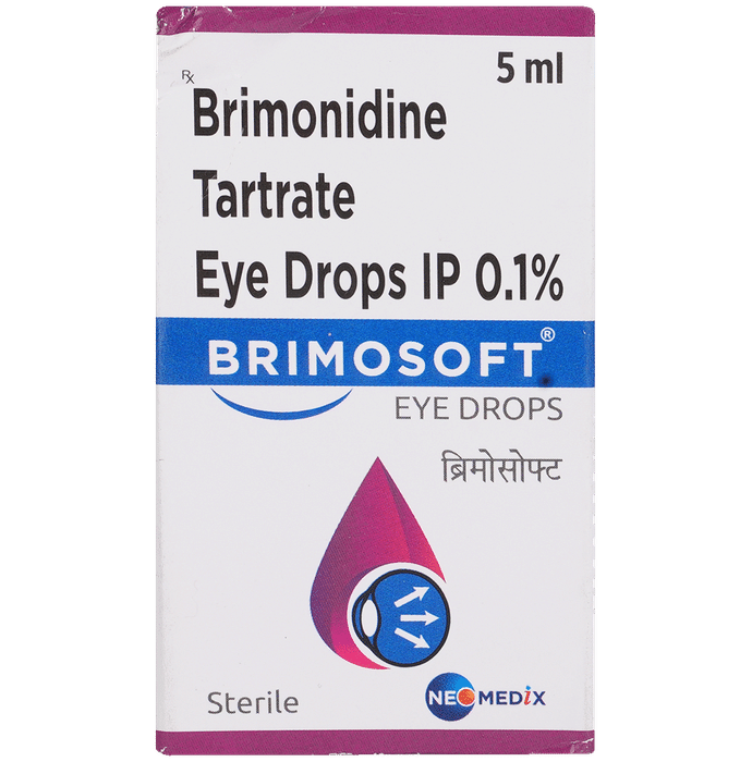 description:Brimosoft Eye Drop is used in the treatment of ocular hypertension (pressure in the eye) and glaucoma. It helps to lower high pressure in the eye and reduces the risk of vision loss. This medicine may be used alone or in combination with another eye drop that reduces pressure in the eye. Brimosoft Eye Drop is for external use only. Use it in the dose and duration as advised by the doctor. If you wear contact lenses, remove them before using the medication. Avoid touching the tip of the dropper to any surface as it may contaminate the eye drop. For best results, use it daily in the evening or at night.The common side effects include allergic conjunctivitis, burning sensation, conjunctival inflammation, conjunctival hyperemia, eye itching, high blood pressure, allergic reaction in the eyes, dry mouth, and visual disturbance. If they persist or worsen, inform your doctor.  If these side effects persist for a longer duration, please inform your doctor. Caution is advised for driving after administration of this injection if your eyes are not able to concentrate and react.