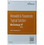 description:Brintop F 10% Solution is a combination medicine used in the treatment of hair loss in men. It works by increasing blood flow to the hair follicles which further prevents hair loss and stimulates re-growth resulting in longer, thicker and increased numbers of hair. Use Brintop F 10% Solution in the dose and duration as prescribed by your doctor or as instructed in the label. Clean and dry your scalp before using it. It may take several months before you notice any hair growth. The first growth could be soft, colorless, and barely visible. Use it in the exact dose and duration as prescribed by your doctor. Using more than recommended will not speed up hair growth and may increase the likelihood of side effects. Use it for as long as the doctor has prescribed to maintain proper hair growth. If your condition does not improve after using it for 4 to 6 months, tell your doctor. This medicine is to be used only by men and not indicated in women.Common side effects of this medicine include application site reactions, dry skin, impotence, decreased libido, ejaculation disorders, breast enlargement, breast tenderness in males, and skin rash. In case of accidental contact with other parts of the body, it may cause excessive hair growth. If you get it in your eyes, mouth, or broken skin, rinse thoroughly with plenty of water. Talk to your doctor if you are bothered by side effects or they do not go away.To ensure its safety, before using this medicine, let your doctor know if you have any problems with your heart. Additionally, inform your doctor about all the medicines you are taking. Pregnant, potentially pregnant, or breastfeeding women should not handle this medicine because of the possibility of absorption of finasteride. As it may cause potential harm to a male baby or fetus.