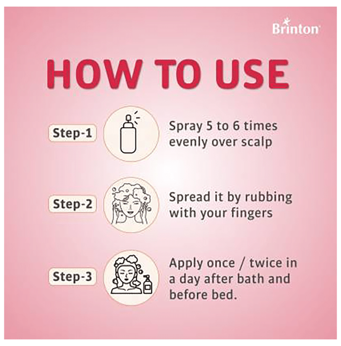description:Brintop F 5% Topical Solution is a combination medicine used in the treatment of hair loss in men. It works by increasing blood flow to the hair follicles which further prevents hair loss and stimulates re-growth resulting in longer, thicker and increased numbers of hair. Use Brintop F 5% Topical Solution in the dose and duration as prescribed by your doctor or as instructed in the label. Clean and dry your scalp before using it. It may take several months before you notice any hair growth. The first growth could be soft, colorless, and barely visible. Use it in the exact dose and duration as prescribed by your doctor. Using more than recommended will not speed up hair growth and may increase the likelihood of side effects. Use it for as long as the doctor has prescribed to maintain proper hair growth. If your condition does not improve after using it for 4 to 6 months, tell your doctor. This medicine is to be used only by men and not indicated in women.Common side effects of this medicine include application site reactions, dry skin, impotence, decreased libido, ejaculation disorders, breast enlargement, breast tenderness in males, and skin rash. In case of accidental contact with other parts of the body, it may cause excessive hair growth. If you get it in your eyes, mouth, or broken skin, rinse thoroughly with plenty of water. Talk to your doctor if you are bothered by side effects or they do not go away.To ensure its safety, before using this medicine, let your doctor know if you have any problems with your heart. Additionally, inform your doctor about all the medicines you are taking. Pregnant, potentially pregnant, or breastfeeding women should not handle this medicine because of the possibility of absorption of finasteride. As it may cause potential harm to a male baby or fetus.