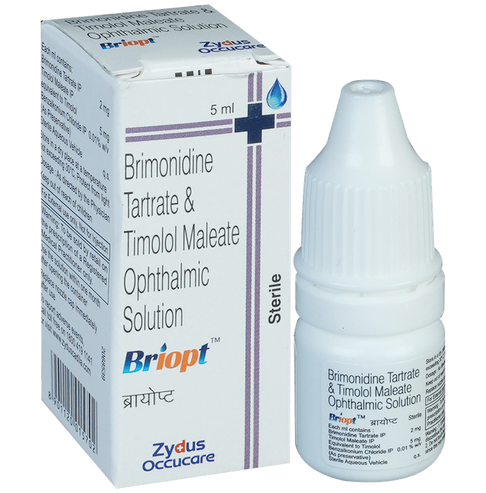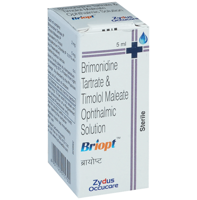 description:Briopt Eye Drop is a prescription medicine used for the treatment of pressure in the eyes (ocular hypertension) and glaucoma. It works by decreasing the pressure of fluid in the eye (aqueous humor), which helps in lowering the increased eye pressure. Briopt Eye Drop is to be used only in the affected eye in the dose and duration as advised by the doctor. Wash your hands before using this medicine. Check the label thoroughly for directions before use. Do not skip any doses and finish the full course of treatment even if you feel better.The most common side effects include burning, irritation, itching, and redness at the application site, sleepiness, and decreased alertness. If these side effects persist for a longer duration, inform your doctor. In case of accidental contact with your nose or mouth, immediately rinse it off with plenty of water. Do not drive or operate heavy machinery immediately after the use of this medicine as it may cause temporary blurring of vision and may affect your ability to drive.