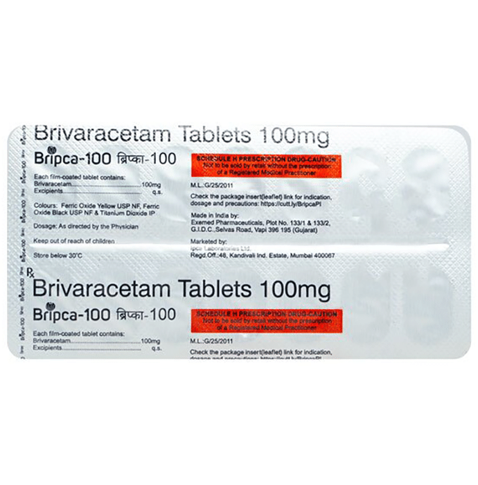 Marketer:Ipca Laboratories Ltd,Composition:Brivaracetam (100mg), medicine_typedrugs,Packaging Detail:strip of 14 tablets,                   Package:Strip,Qty:14,Product Form:Tablet, prescription_required:Prescription Required,primary_use: