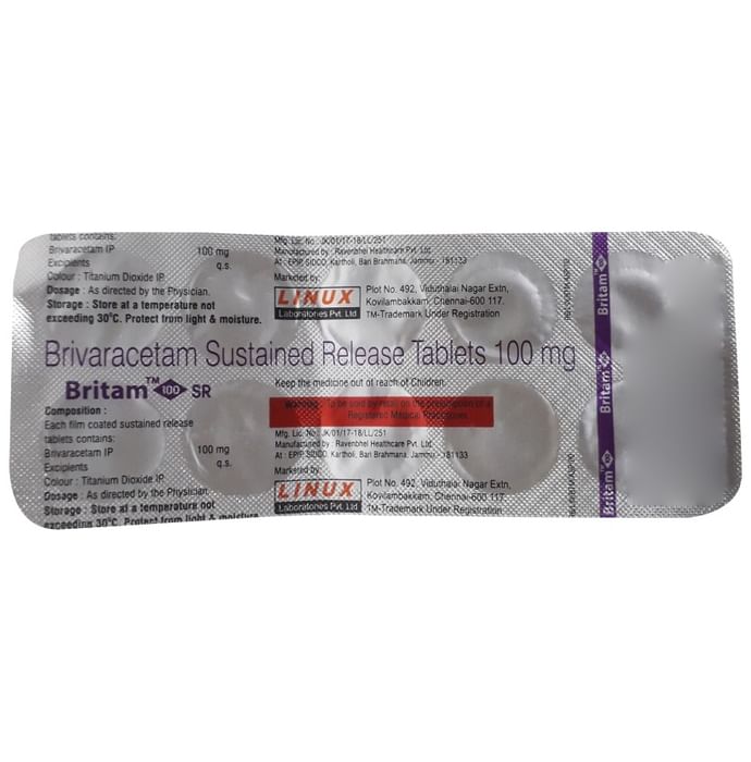 Marketer:Linux Laboratories,Composition:Brivaracetam (100mg), medicine_typedrugs,Packaging Detail:strip of 10 tablet sr,          Package:Strip,Qty:10,Product Form:Tablet SR, prescription_required:Prescription Required,primary_use: