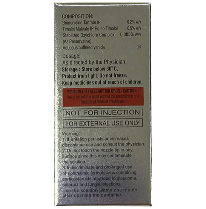 Marketer:Dexa Care,Composition:Timolol (0.5% w/v) + Brimonidine (0.2% w/v), medicine_typedrugs,Packaging Detail:bottle of 5 ml Eye Drop,                   Package:Bottle,Qty:5 ml,Product Form:Eye Drop, prescription_required:Prescription Required,primary_use: