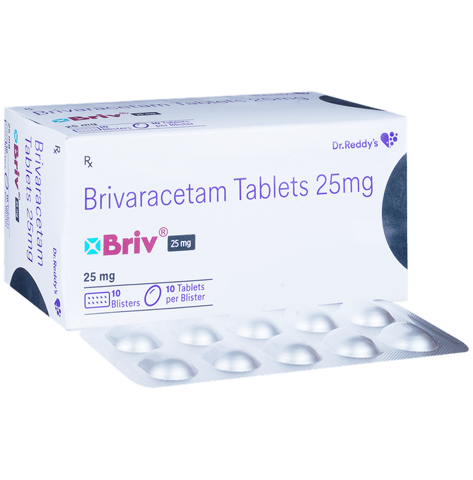 description:Briv 25mg Tablet is an anti-epileptic medicine used to treat seizures (fits) in epilepsy. It can be used alone or along with other medicines. It helps to prevent seizures for as long as you continue to take it. Briv 25mg Tablet suppresses the abnormal electrical activity in the brain. You can take it regularly with or without food but try to take it at the same time each day to get the most benefit. The dose and how often you need it will be decided by your doctor so that you get the right amount to control your seizures. It may be increased gradually.It is generally advised as a long-term treatment. You should continue taking it for as long as your doctor has told you to, even if you feel well. If you stop or miss doses your seizures could get worse. Do not stop taking this medicine unless your doctor tells you to. This is because stopping the medicine suddenly could make your seizures worse.Some common side effects of this medicine include dizziness, headache, nausea, and vomiting. You may also experience behavioral changes, aggressive behavior, irritation, agitation, etc. Side effects are more common during the first few weeks and usually lessen as your body gets used to the medicine. Most of these side effects do not need medical attention, but some of them can be serious. A small number of people being treated with this medicine have had thoughts of harming or killing themselves. Contact your doctor if your mood changes for the worse.Before taking it, you should tell your doctor if you have liver or kidney-related problems, depression, or suicidal thoughts, and if you are pregnant or planning to become pregnant. Breastfeeding mothers should also consult their doctor before taking this medicine.