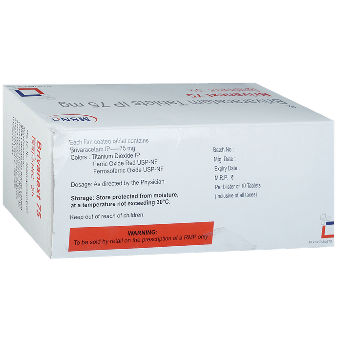 description:Brivanext 75mg Tablet is an anti-epileptic medicine used to treat seizures (fits) in epilepsy. It can be used alone or along with other medicines. It helps to prevent seizures for as long as you continue to take it. Brivanext 75mg Tablet suppresses the abnormal electrical activity in the brain. You can take it regularly with or without food but try to take it at the same time each day to get the most benefit. The dose and how often you need it will be decided by your doctor so that you get the right amount to control your seizures. It may be increased gradually.It is generally advised as a long-term treatment. You should continue taking it for as long as your doctor has told you to, even if you feel well. If you stop or miss doses your seizures could get worse. Do not stop taking this medicine unless your doctor tells you to. This is because stopping the medicine suddenly could make your seizures worse.Some common side effects of this medicine include dizziness, headache, nausea, and vomiting. You may also experience behavioral changes, aggressive behavior, irritation, agitation, etc. Side effects are more common during the first few weeks and usually lessen as your body gets used to the medicine. Most of these side effects do not need medical attention, but some of them can be serious. A small number of people being treated with this medicine have had thoughts of harming or killing themselves. Contact your doctor if your mood changes for the worse.Before taking it, you should tell your doctor if you have liver or kidney-related problems, depression, or suicidal thoughts, and if you are pregnant or planning to become pregnant. Breastfeeding mothers should also consult their doctor before taking this medicine.