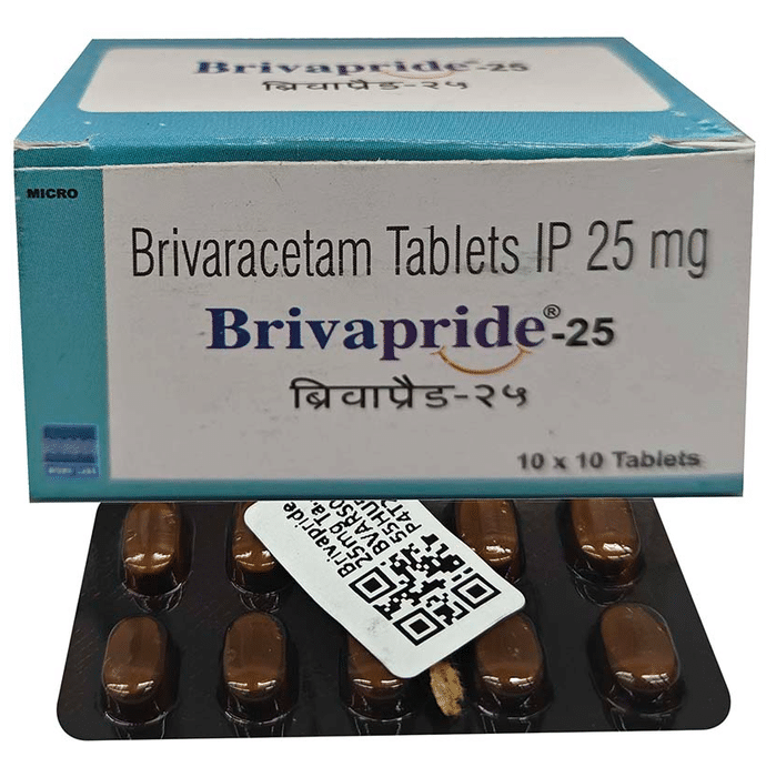 description:Brivapride 25mg Tablet is an anti-epileptic medicine used to treat seizures (fits) in epilepsy. It can be used alone or along with other medicines. It helps to prevent seizures for as long as you continue to take it. Brivapride 25mg Tablet suppresses the abnormal electrical activity in the brain. You can take it regularly with or without food but try to take it at the same time each day to get the most benefit. The dose and how often you need it will be decided by your doctor so that you get the right amount to control your seizures. It may be increased gradually.It is generally advised as a long-term treatment. You should continue taking it for as long as your doctor has told you to, even if you feel well. If you stop or miss doses your seizures could get worse. Do not stop taking this medicine unless your doctor tells you to. This is because stopping the medicine suddenly could make your seizures worse.Some common side effects of this medicine include dizziness, headache, nausea, and vomiting. You may also experience behavioral changes, aggressive behavior, irritation, agitation, etc. Side effects are more common during the first few weeks and usually lessen as your body gets used to the medicine. Most of these side effects do not need medical attention, but some of them can be serious. A small number of people being treated with this medicine have had thoughts of harming or killing themselves. Contact your doctor if your mood changes for the worse.Before taking it, you should tell your doctor if you have liver or kidney-related problems, depression, or suicidal thoughts, and if you are pregnant or planning to become pregnant. Breastfeeding mothers should also consult their doctor before taking this medicine.