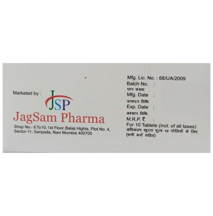Manufacturer details:,                                   Marketer details:Jagsam Pharma | Shop No-2, Plot No-4, Sector-11, Balaji Heights, Sanpada, Navi Mumbai, Maharashtra – 400705, India