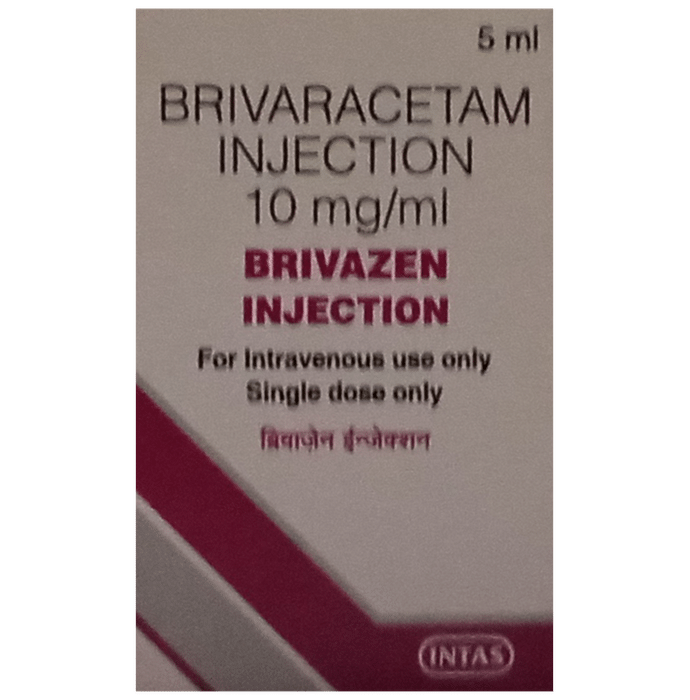 description:Brivazen Injection is an anti-epileptic medicine used to treat seizures in epilepsy. It can be used by itself to treat adults or along with other medicines to treat adults and children. It helps to prevent seizures for as long as you continue to take it. Brivazen Injection suppresses the abnormal electrical activity in the brain. You can take it with or without food but try to take it at the same time each day to get the most benefit. The dose will depend on your condition and how you respond to the medicine. Your doctor will advise the right dose for you.It is generally advised as a long-term treatment. You should continue taking it for as long as your doctor has told you to, even if you feel well. If you stop or miss doses your seizures could get worse. It may take several months to come off it safely. It is advisable not to change the brand of medication without doctor consultation, and always keep a stock of medicine with you.Very few people taking it have any serious problems but the most common side effects of this medicine include sleepiness, loss of appetite, stomach pain, and diarrhea. You may also experience aggressive or abnormal behavior, depression, insomnia, dizziness, problems with balance, stomach pain, and rash. Side effects are more common during the first few weeks and usually lessen as your body gets used to the medicine. Most do not need medical attention, but some of them can be serious. Let your doctor know if you have any symptoms – there may be ways of preventing or reducing them. A small number of people being treated with this medicine have had thoughts of harming or killing themselves. Contact your doctor if your mood changes for the worse.Before taking it, you should tell your doctor if you have kidney problems, depression or suicidal thoughts and if you are pregnant or planning to become pregnant. You should not breastfeed while taking this medicine. Alcohol may increase the risk of seizures and worsen the side effects such as drowsiness and dizziness. Avoid alcohol while taking this medicine. Drowsiness and dizziness may affect your ability to drive or operate machinery. Your kidney function may need to be tested often while taking this medicine.