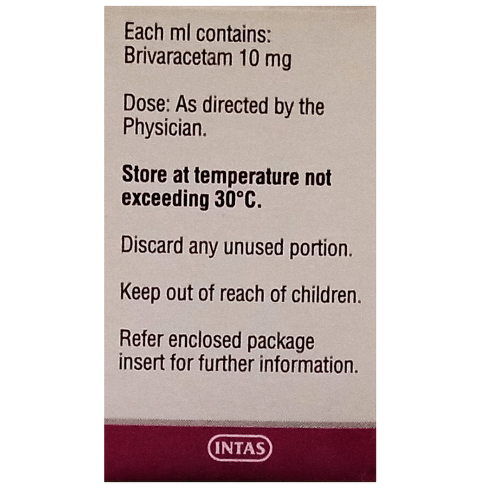 Marketer:Intas Pharmaceuticals Ltd,Composition:Brivaracetam (10mg/ml), medicine_typedrugs,Packaging Detail:vial of 5 ml Injection,          Package:Vial,Qty:5 ml,Product Form:Injection, prescription_required:Prescription Required,primary_use: