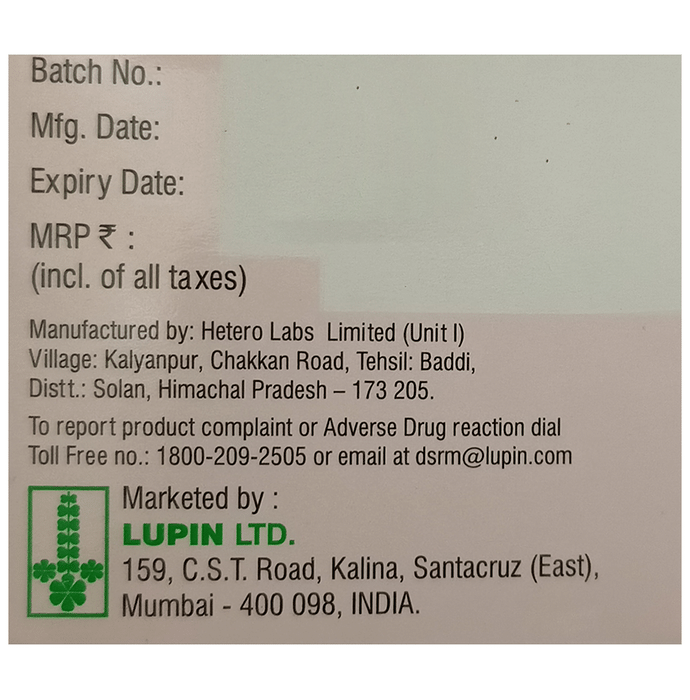 Manufacturer details:,                                   Marketer details:Lupin Ltd | 3rd floor Kalpataru Inspire, Off. W E Highway, Santacruz (East), Mumbai 400 055. India