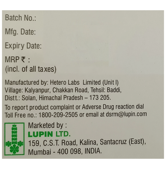 Manufacturer details:,                                   Marketer details:Lupin Ltd | 3rd floor Kalpataru Inspire, Off. W E Highway, Santacruz (East), Mumbai 400 055. India