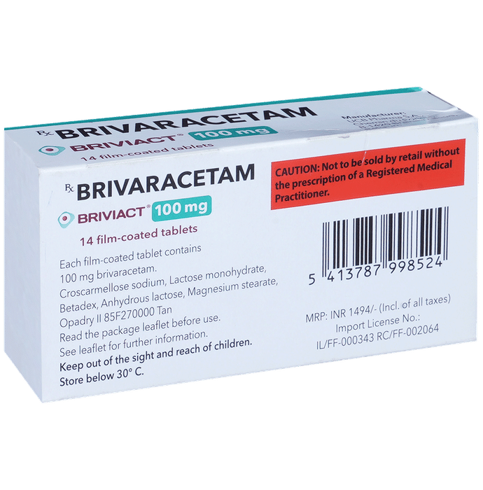 description:Briviact 100mg Tablet is an anti-epileptic medicine used to treat seizures (fits) in epilepsy. It can be used alone or along with other medicines. It helps to prevent seizures for as long as you continue to take it. Briviact 100mg Tablet suppresses the abnormal electrical activity in the brain. You can take it regularly with or without food but try to take it at the same time each day to get the most benefit. The dose and how often you need it will be decided by your doctor so that you get the right amount to control your seizures. It may be increased gradually.It is generally advised as a long-term treatment. You should continue taking it for as long as your doctor has told you to, even if you feel well. If you stop or miss doses your seizures could get worse. Do not stop taking this medicine unless your doctor tells you to. This is because stopping the medicine suddenly could make your seizures worse.Some common side effects of this medicine include dizziness, headache, nausea, and vomiting. You may also experience behavioral changes, aggressive behavior, irritation, agitation, etc. Side effects are more common during the first few weeks and usually lessen as your body gets used to the medicine. Most of these side effects do not need medical attention, but some of them can be serious. A small number of people being treated with this medicine have had thoughts of harming or killing themselves. Contact your doctor if your mood changes for the worse.Before taking it, you should tell your doctor if you have liver or kidney-related problems, depression, or suicidal thoughts, and if you are pregnant or planning to become pregnant. Breastfeeding mothers should also consult their doctor before taking this medicine.