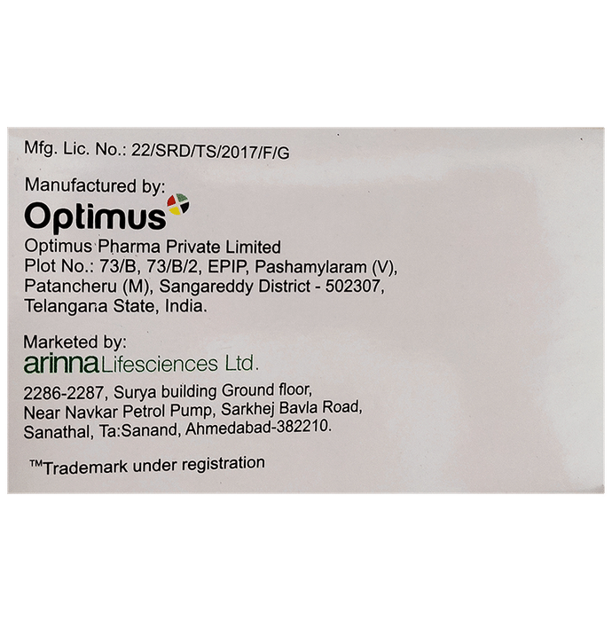 Manufacturer details:,                                                                     Marketer details:Arinna Lifescience Pvt Ltd | A – 504, Shapath-4, B/S Hotel Crowne Plaza, Opp. Karnavati Club, S. G. Highway ,Ahmedabad 380 051 Gujarat