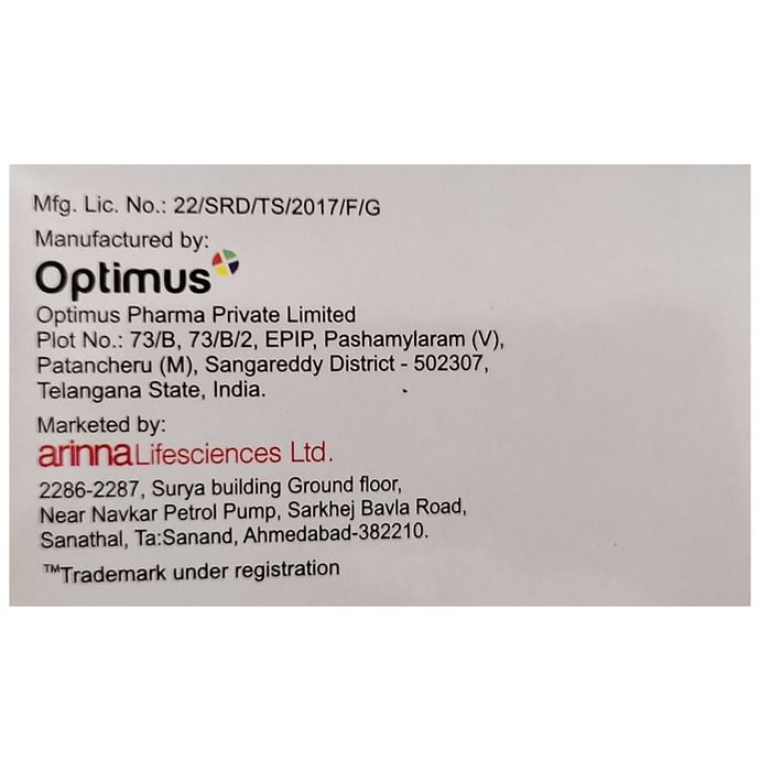 Manufacturer details:,                                   Marketer details:Arinna Lifescience Pvt Ltd | A – 504, Shapath-4, B/S Hotel Crowne Plaza, Opp. Karnavati Club, S. G. Highway ,Ahmedabad 380 051 Gujarat