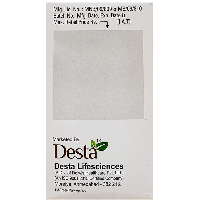 Manufacturer details:,                                                                     Marketer details:Desta Lifescience | D-902, Signature-2 , Sarkhej-Sanand Cross Roads, Sarkhej, Ahmedabad – 382210 Gujarat-India