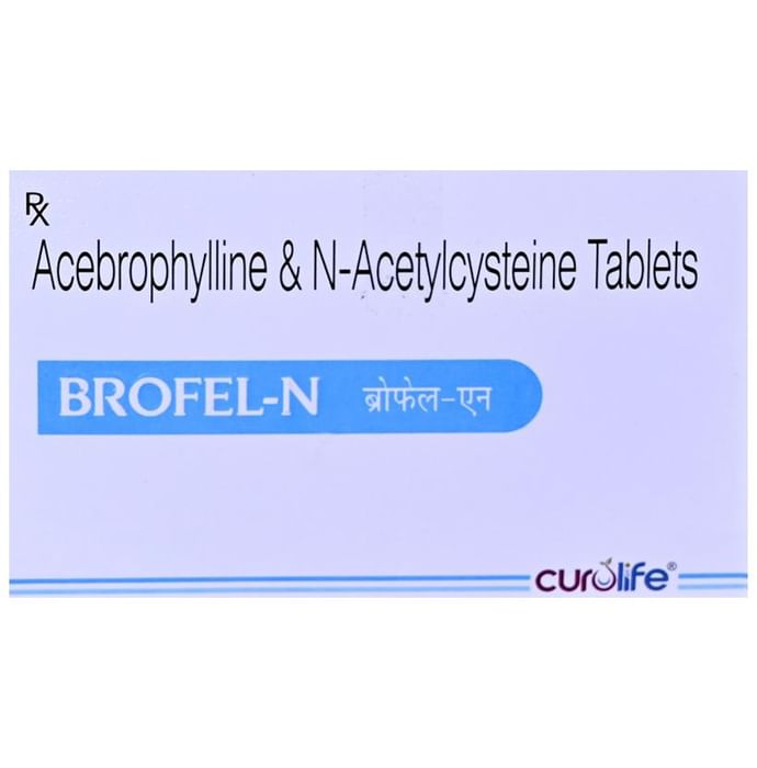 description:Brofel-N Tablet is used to treat and prevent asthma and symptoms of chronic obstructive pulmonary disorder (a lung disorder in which the flow of air to the lungs is blocked) such as coughing, wheezing, and shortness of breath. It helps relax the muscles of the air passages thereby making it easier to breathe. Brofel-N Tablet is taken with or without food in a dose and duration as advised by the doctor. The dose you are given will depend on your condition and how you respond to the medicine. You should keep taking this medicine for as long as your doctor recommends. If you stop treatment too early your symptoms may come back and your condition may worsen. Let your healthcare team know about all other medications you are taking as some may affect, or be affected by this medicine.The most common side effects are vomiting, heartburn, stomach upset, rash, itching, and nasal inflammation. Most of these are temporary and usually resolve with time. Contact your doctor straight away if you are at all concerned about any of these side effects. Avoid drinking alcohol while taking this medicine as that may cause excessive drowsiness.Never support self-medication or recommend your medicine to another person. Before you start taking this medicine it is important to inform your doctor if you are suffering from liver or kidney disease. You should also tell your doctor if you are pregnant, planning pregnancy, or breastfeeding.