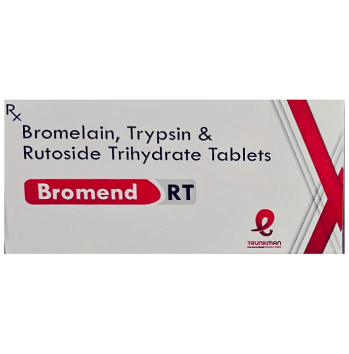Bromend RT Tablet is a pain-relieving medicine. It is used in the treatment of various conditions such as fever, headache, arthritis-related pain, menstrual cramps, and toothache. Bromend RT Tablet should be taken with or without food. The dose and duration will depend on what you are using it for and how well it helps your symptoms. Use it regularly and do not discontinue using it until the doctor tells you it is alright to stop.The medicine is generally safe with little or no side effects. However, if you experience any symptoms which you believe are caused by the use of this medicine, let your doctor know. Your doctor may be able to suggest ways of preventing or reducing the side effects. In general, you should try to use the smallest amount necessary to control your symptoms.Before using the medicine, you should tell your doctor if you have any other medical conditions or disorders. To make sure it is safe for you, you should also tell your doctor all the other medicines you are taking. Before using the medicine, let your doctor also know if you have any problems with your liver or kidneys. Pregnant and breastfeeding women should consult their doctors first before using the medicine.