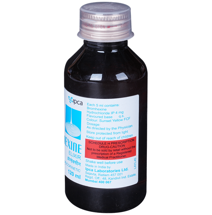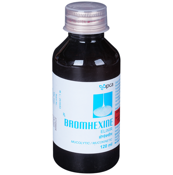 Bromhexine Elixir is mucolytic medication. It is used in the treatment of various respiratory tract disorders associated with excessive mucus. It thins and loosens the mucus in the airway and makes it easier to cough out. Bromhexine Elixir should be taken with food. For better results, it is suggested to take it at the same time every day. The dose and how often you take it depends on what you are taking it for. Your doctor will decide how much you need to improve your symptoms. It is advised not to use it for more than 14 days without doctor’s consultation.The most common side effects of this medicine include irritation of the ear, allergic skin rash, dizziness, and headache. Talk to your doctor if you’re worried about side effects or they do not go away. Generally, it is advised not to take alcohol while on treatment.Before taking this medicine, tell your doctor if you have liver or kidney disease or if you have stomach problems. Your doctor should also know about all other medicines you are taking as many of these may make this medicine less effective or change the way it works. You must take the doctor’s advice before using this medicine if you are pregnant or breastfeeding.