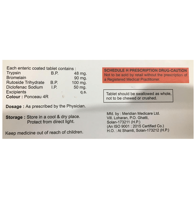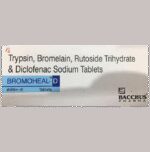 Marketer:Bacchus Pharma,Composition:Trypsin (48mg) + Bromelain (90mg) + Rutoside (100mg) + Diclofenac (50mg), medicine_typedrugs,Packaging Detail:strip of 10 tablets,          Package:Strip,Qty:10,Product Form:Tablet, prescription_required:Prescription Required,primary_use: