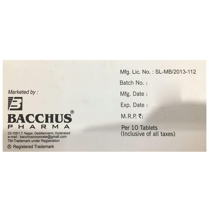 Manufacturer details:,                                   Marketer details:Bacchus Pharma | 9, Ashok Nagar, Canal Road, Jalandhar City-144002.