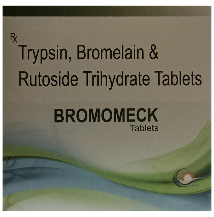 Marketer:Sunmeck Pharma Pvt Ltd,Composition:Bromelain (180mg) + Trypsin (96mg) + Rutoside (200mg), medicine_typedrugs,Packaging Detail:strip of 10 tablets,          Package:Strip,Qty:10,Product Form:Tablet, prescription_required:Prescription Required,primary_use: