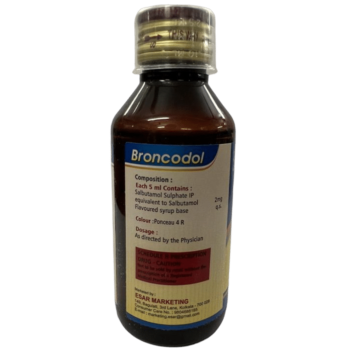 description:Broncodol Syrup is used to relieve symptoms of asthma and chronic obstructive pulmonary diseases (COPD) such as coughing, wheezing, and breathlessness. It helps in relaxing the muscles of the air passages, thus widening it and making it easier to breathe. You can take Broncodol Syrup with or without food. The dose will depend on your condition and how you respond to the medicine. Try to take it at the same time each day. It is important to keep taking this medicine until your doctor tells you not to. Use this medicine regularly to get the most benefit from it even if you feel well.This medicine is generally safe however it may cause tremors, headaches, palpitation, fast heart rate, nervousness, and muscle cramps in some people. These are often not dangerous and should gradually improve as your body gets used to the medicine. There are other, rarer, side effects and you should call your doctor straight away if you get chest pain, a very bad headache, or very bad dizziness.Before using this medicine, you should tell your doctor if you have high blood pressure, an overactive thyroid gland, a history of heart problems, diabetes, or low levels of potassium in your blood to make sure it is safe. Also, make sure your doctor knows if you are pregnant or breastfeeding before taking this medicine. This medicine can make you feel dizzy or shaky so avoid driving, cycling, or using tools or machinery until you feel better. You should not smoke as it causes damage to your lungs and will make your condition worse.