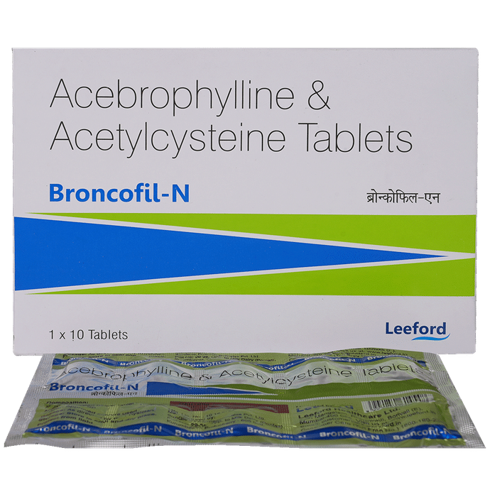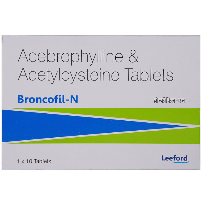 description:Broncofil N Tablet is used to treat and prevent asthma and symptoms of chronic obstructive pulmonary disorder (a lung disorder in which the flow of air to the lungs is blocked) such as coughing, wheezing, and shortness of breath. It helps relax the muscles of the air passages thereby making it easier to breathe. Broncofil N Tablet is taken with or without food in a dose and duration as advised by the doctor. The dose you are given will depend on your condition and how you respond to the medicine. You should keep taking this medicine for as long as your doctor recommends. If you stop treatment too early your symptoms may come back and your condition may worsen. Let your healthcare team know about all other medications you are taking as some may affect, or be affected by this medicine.The most common side effects are vomiting, heartburn, stomach upset, rash, itching, and nasal inflammation. Most of these are temporary and usually resolve with time. Contact your doctor straight away if you are at all concerned about any of these side effects. Avoid drinking alcohol while taking this medicine as that may cause excessive drowsiness.Never support self-medication or recommend your medicine to another person. Before you start taking this medicine it is important to inform your doctor if you are suffering from liver or kidney disease. You should also tell your doctor if you are pregnant, planning pregnancy, or breastfeeding.