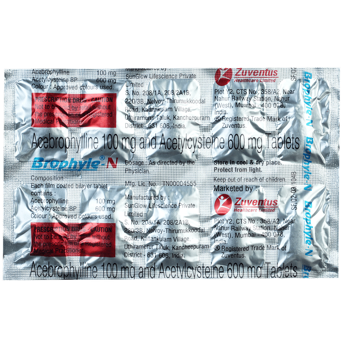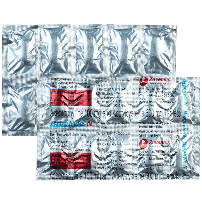 Marketer:Zuventus Healthcare Ltd,Composition:Acebrophylline (100mg) + Acetylcysteine (600mg), medicine_typedrugs,Packaging Detail:strip of 10 tablets, Package:Strip,Qty:10,Product Form:Tablet, prescription_required:Prescription Required,primary_use: