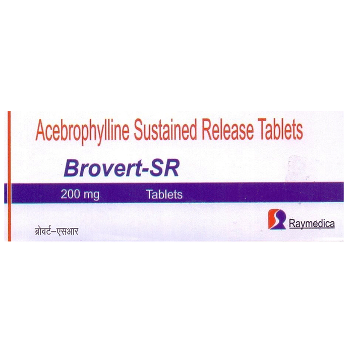 description:Brovert-SR Tablet is used to treat and prevent symptoms of asthma, bronchitis, and chronic obstructive pulmonary disorder (a lung disorder in which flow of air to the lung is blocked). It helps in relaxing the muscles of the air passages, thus widening it and making it easier to breathe. Brovert-SR Tablet can be taken with the food in evening. Take it at the same time every day to get the most benefit. The dose and how often you take it depends on what you are taking it for. Your doctor will decide how much you need to improve your symptoms. Take this medicine for as long as it is prescribed for you. Do not miss even a single dose, if in any case, you missed a dose, take it as soon as you remember or better to skip the missed dose and continue with regular dosing. It does not work immediately or prevent the already started breathing trouble, hence always carry your medical inhaler with you for an emergency.The most common side effects of this medicine include abdominal discomfort, abdominal distension, vomiting, abdominal pain, diarrhea, constipation, and heart burn. If these bother you or appear serious, let your doctor know. There may be ways of reducing or preventing them. Generally, it is advised not to consume alcohol or do not smoke while on treatment.Before taking this medicine, let your doctor if you have kidney or liver disease or if you have heart-related problems. Your doctor should also know about all other medicines you are taking as many of these may make this medicine less effective or change the way it works. Inform your doctor if you are pregnant or breastfeeding before starting the treatment.