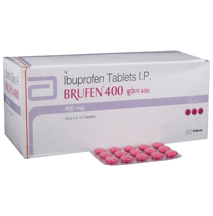 description:Brufen 400 Tablet is a pain-relieving medicine. It is used to treat many conditions such as headache, fever, period pain, toothache, colds, and mild arthritis. It is also a common ingredient in many cold and flu remedies.Brufen 400 Tablet should be taken with food to avoid stomach upset and reduce side effects. In general, you should try to use the smallest amount necessary to control your symptoms, for the shortest possible time. You should take this medicine regularly while you need it. Try not to miss doses as it will become less effective if you do.The medicine is well tolerated with little or no side effects. However, it may cause vomiting, stomach pain, nausea, and indigestion in some people. If any of these side effects do not resolve with time or get worse, you should let your doctor know. Your doctor may be able to suggest ways of preventing or reducing the symptoms.This medicine is widely prescribed and considered safe but is not suitable for everybody. Before you take it, you should tell your doctor if you have kidney problems, asthma, blood disorders, or drink a lot of alcohol. Also, tell your doctor what other medicines you are taking to make sure you are safe. It is best to avoid drinking alcohol while using this medicine.