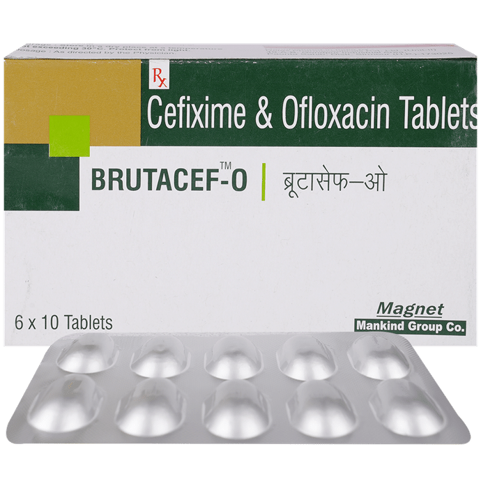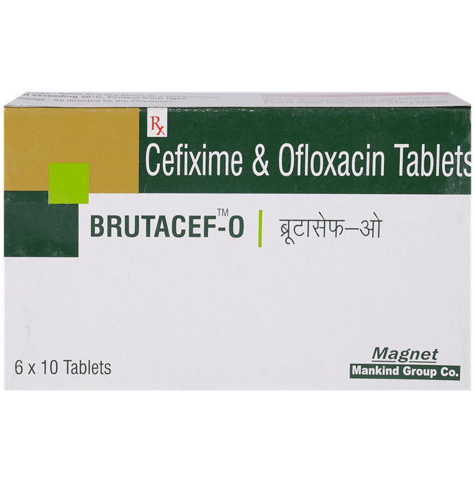 description:Brutacef O Tablet is a combination medicine that is used to treat various types of bacterial infections. It fights against the microorganisms to prevent their growth and further spread of the infection. Brutacef O Tablet is a prescription medicine. It is advised to take it as per the prescription. It can be taken with or without food, but it must be taken at a fixed time to ensure better efficacy. Do not consume more than the recommended dose, as this may have harmful effects on your body. If you miss a dose, take it as soon as you remember. The course of the treatment must be completed even if you feel better. Sudden discontinuation of the treatment may affect the potency of the medicine.Some common side effects of this medicine are nausea, vomiting, diarrhea, indigestion, etc. If any of the side effects get aggravated, you must consult your doctor immediately. If you experience any allergic reaction (rashes, itching, swelling, shortness of breath, etc.), you must seek immediate medical help.Before taking this medicine, you should tell your doctor if you are taking any medicines for any health condition. Pregnant or breastfeeding women should also consult with their doctor before taking it. Avoid drinking alcohol as it can cause excessive drowsiness with this medicine. It usually does not impair your ability to drive, but you should not drive if it makes you feel sleepy or dizzy. You must take adequate rest for a faster recovery, also take a healthy diet and drink plenty of water. Your doctor may ask for a few laboratory and diagnostic tests to know the effects of the medicine on your body.