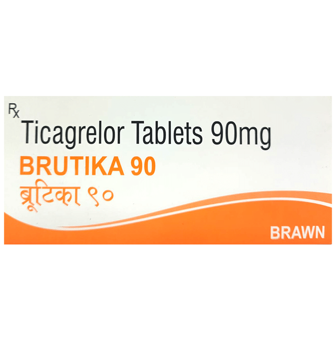 description:Brutika 90 Tablet belongs to a group of medicines called antiplatelet or blood thinners. It reduces the formation of harmful blood clots in blood vessels, which helps to prevent heart attacks or strokes in people with heart disease. Brutika 90 Tablet is also used to treat people with a recent heart attack or severe heart-related chest pain (unstable angina) who have undergone stenting of the heart. It helps to prevent serious heart-related problems like having another heart attack, stroke, or formation of blood clots in stents in such people.Your doctor will also prescribe aspirin, another antiplatelet medicine, along with this medicine. Brutika 90 Tablet may be taken with or without food and should be taken regularly at the same time each day. It is important to keep taking it even if you feel well. If you stop taking this medicine, it may increase your chances of having another heart attack or stroke.The most common side effects of this medicine are dyspnea (breathlessness) and bleeding. If you cut or injure yourself, it may take longer than usual for the bleeding to stop. Such episodes of bleeding are usually mild and resolve on their own. Mild breathlessness caused by this medicine usually resolves on its own with continued treatment. Let your doctor know if bleeding persists or if the breathlessness worsens or does not go away.Brutika 90 Tablet is not suitable for some people. Do not take it if you are bleeding from anywhere in the body, such as a stomach ulcer or bleeding within the brain. It is also not recommended for people with liver diseases. Before using the medicine, inform your doctor of any such problems.