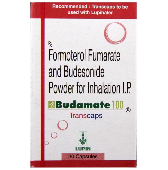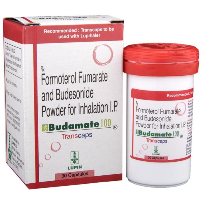 description:Budamate 100 Transcaps is a combination of two medicines in one inhaler. It relieves the long-term symptoms of asthma and COPD, making breathing easier. It works by inhibiting the release of certain chemical messengers that cause inflammation (swelling) and relaxes the muscles in the airways. Your doctor will tell you how often you need to use your inhaler. The effect of this medicine may be noticeable after a few days but will only reach its maximum after a few weeks. This medicine must be used regularly to be effective, so go on taking it even if you don’t have any symptoms. That means it’s doing its job. If you stop taking it your symptoms may get worse. This medicine should not be used to relieve sudden shortness of breath. If sudden shortness of breath occurs, use your rescue inhaler. To get the benefit from this medicine you need to make sure you get your inhaler technique right, otherwise, it does not work as well.The most common side effects include headache, nausea, vomiting, stomach discomfort, and respiratory tract infection. If you get there, don’t stop taking it but do talk to your doctor. You can prevent some of these symptoms by rinsing your mouth and throat with water or brushing your teeth after using your inhaler. There are other, rarer side effects which can be serious. Talk to your doctor if you’re worried about them.Before taking it, you should tell your doctor if you have any kidney or liver diseases so that your doctor can prescribe a suitable dose for you. You should also tell your doctor if you are pregnant, planning pregnancy or breastfeeding.