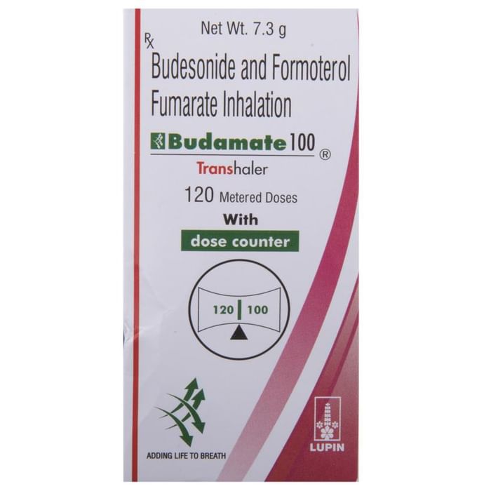 description:Budamate 100 Transhaler is a combination of two medicines in one inhaler. It relieves the long-term symptoms of asthma and COPD, making breathing easier. It works by inhibiting the release of certain chemical messengers that cause inflammation (swelling) and relaxes the muscles in the airways. Your doctor will tell you how often you need to use your inhaler. The effect of this medicine may be noticeable after a few days but will only reach its maximum after a few weeks. This medicine must be used regularly to be effective, so go on taking it even if you don’t have any symptoms. That means it’s doing its job. If you stop taking it your symptoms may get worse. This medicine should not be used to relieve sudden shortness of breath. If sudden shortness of breath occurs, use your rescue inhaler. To get the benefit from this medicine you need to make sure you get your inhaler technique right, otherwise, it does not work as well.The most common side effects include headache, nausea, vomiting, stomach discomfort, and respiratory tract infection. If you get there, don’t stop taking it but do talk to your doctor. You can prevent some of these symptoms by rinsing your mouth and throat with water or brushing your teeth after using your inhaler. There are other, rarer side effects which can be serious. Talk to your doctor if you’re worried about them.Before taking it, you should tell your doctor if you have any kidney or liver diseases so that your doctor can prescribe a suitable dose for you. You should also tell your doctor if you are pregnant, planning pregnancy or breastfeeding.