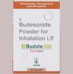 description:Budate 200 Transcaps is used to prevent the symptoms of asthma (wheezing and shortness of breath). It is a steroid and is known as a ‘__’preventer’__’. You need to have a fast-acting “reliever” as well because this medicine will not stop an asthma attack that has already started. Your doctor will tell you how often you need to use Budate 200 Transcaps. It is important that you take the lowest dose needed to effectively control your asthma. The effect of this medicine may be noticeable after a few days but will only reach its maximum after a few weeks. This medicine must be used regularly to be effective, so go on taking it even if you do not have any symptoms. No symptoms mean that the medicine is doing its job. If you stop taking it your asthma may get worse. It should not be used to relieve sudden asthma attacks. If an asthma attack occurs, use your quick-relief inhaler ‘__’reliever’__’. To get the benefit from this medicine you need to make sure you get your inhaler technique right, otherwise, it will not work as well.The most common side effects are irritation in the throat, difficulty swallowing, headache, and indigestion. If you get these, do not stop taking it but do talk to your doctor. You can help prevent these symptoms by rinsing your mouth and throat with water or brushing your teeth after using your inhaler. There are other rare, side effects that can be serious. Talk to your doctor if you are worried about them. In general, you should be trying to avoid situations that make your asthma worse (your triggers) and try not to smoke.Before taking Budate 200 Transcaps, you should tell your doctor if you have tuberculosis, any infections in your mouth or lungs, or liver disease. While taking it you may be more at risk of getting infections so stay away from people with colds and flu. If you use Budate 200 Transcaps for a long time it may cause weak bones (osteoporosis) and damage to your eyes (glaucoma or cataracts). You might need tests for bone density and eye pressure. Ask your doctor whether it’s safe to take this medicine if you are pregnant or breastfeeding.
