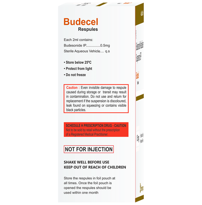 description:Budecel Respule belongs to a group of medicines called steroids. It is used to treat moderate to severe ulcerative colitis. It helps relieve pain and inflammation caused by the condition. Budecel Respule can be taken with or without food. To get maximum benefit of the medicine, take it regularly and at the fixed time of each day. Do not discontinue taking the medication without talking to your doctor as it may worsen your symptoms.Budecel Respule may cause few common side effects such as mood changes or stomach upset. Taking Budecel Respule can also make it harder for you to fight off infections. Tell your doctor if you have any signs of infection such as fever or sore throat.