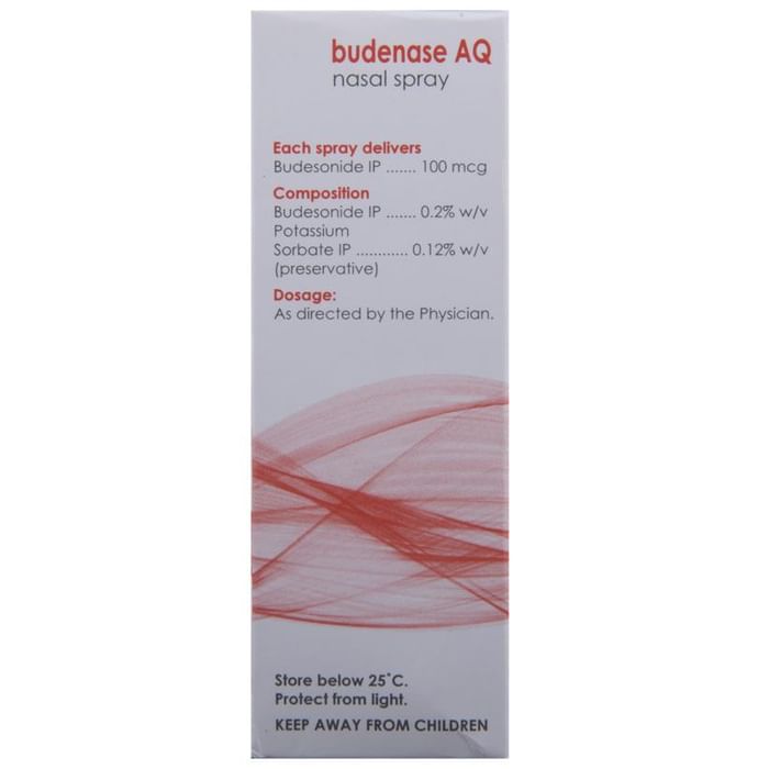 description:Budenase AQ Nasal Spray is used to relieve symptoms of allergic rhinitis such as sneezing and runny nose. It is also used to reduce swelling and shrink nasal polyps. It works by blocking the production of certain chemicals that cause swelling and allergies, thus relieving the discomfort and irritation in the nose. Budenase AQ Nasal Spray can be taken with or without food. To get maximum benefit of the medicine, take it regularly and at the fixed time of each day. Do not discontinue taking the medication without talking to your doctor as it may worsen your symptoms.Budenase AQ Nasal Spray may cause few common side effects such as mood changes or stomach upset, cough, abd rahses. Taking Budenase AQ Nasal Spray can also make it harder for you to fight off infections. Tell your doctor if you have any signs of infection such as fever or sore throat.