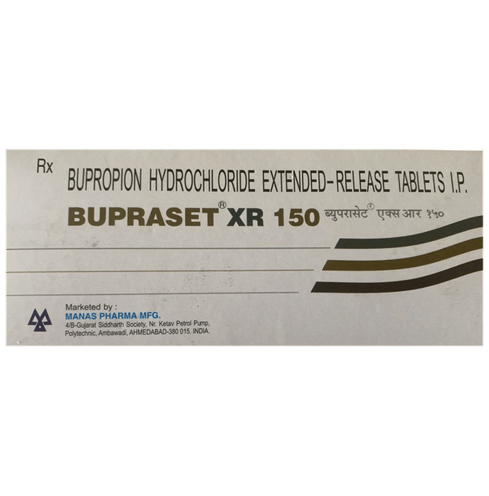 description:Bupraset XR 150 Tablet is used in the treatment of depression and smoking addiction. This medicine helps by increasing the level of chemical messengers in the brain that relax the nerves and have a calming effect on the brain. Bupraset XR 150 Tablet may be taken with or without food. It is advised to take this medicine at a fixed time each day. You should never skip any doses and finish the full course of treatment even if you feel better. This medication mustn’t be stopped suddenly as it may worsen your symptoms.Some common side effects of this medicine include insomnia (difficulty sleeping), allergic reaction, impaired concentration, sweating, headache, nausea, vomiting, and dry mouth. It even causes dizziness and sleepiness, so do not drive or do anything that requires mental focus. Moreover, most of the side effects are immediate and often go away with time. Please consult your doctor if these bother you or do not go away.Before taking this medicine it is important to inform your doctor if you have any history of seizure or if you drink alcohol. Inform your doctor if you develop any unusual mood changes or if you have any suicidal thoughts.
