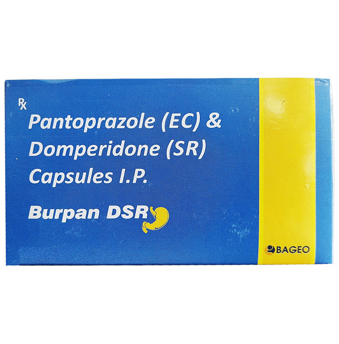 description:Burpan DSR Capsule is a prescription medicine used to treat gastroesophageal reflux disease (Acid reflux), dyspepsia (indigestion), and gastritis. It helps treat the conditions by reducing the amount of acid in the stomach thereby relieving symptoms of acidity such as heartburn, stomach pain, or irritation. Burpan DSR Capsule also neutralizes the acid in the stomach and promotes easy passage of gas to reduce stomach discomfort. It is taken without food in a dose and duration as advised by the doctor. The dose you are given will depend on your condition and how you respond to the medicine. You should keep taking Burpan DSR Capsule for as long as your doctor recommends. If you stop treatment too early your symptoms may come back and your condition may worsen. Let your healthcare team know about all other medications you are taking as some may affect, or be affected by this medicine.The most common side effects of Burpan DSR Capsule are diarrhea, vomiting, stomach pain, flatulence, dryness in the mouth, and headache. Most of these are temporary and usually resolve with time. Contact your doctor straight away if you are at all concerned about any of these side effects. This medicine may cause dizziness and sleepiness, so do not drive or do anything that requires mental focus until you know how this medicine affects you. Avoid drinking alcohol while taking Burpan DSR Capsule as it can worsen your sleepiness. Lifestyle modifications like having cold milk and avoiding hot tea, coffee, spicy food, or chocolate can help you to get better results.Before you start taking this medicine it is important to inform your doctor if you are suffering from kidney or liver disease. You should also tell your doctor if you are pregnant, planning pregnancy, or breastfeeding.