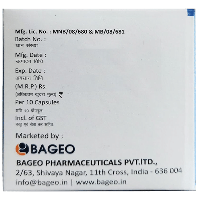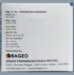Manufacturer details:,                                   Marketer details:Bageo Pharmaceuticals Pvt Ltd | Ramchandra Niwas, Near Shastra House, Anand Koliwada, Mumbra, Thane(Dt), Maharastra, India – 400612